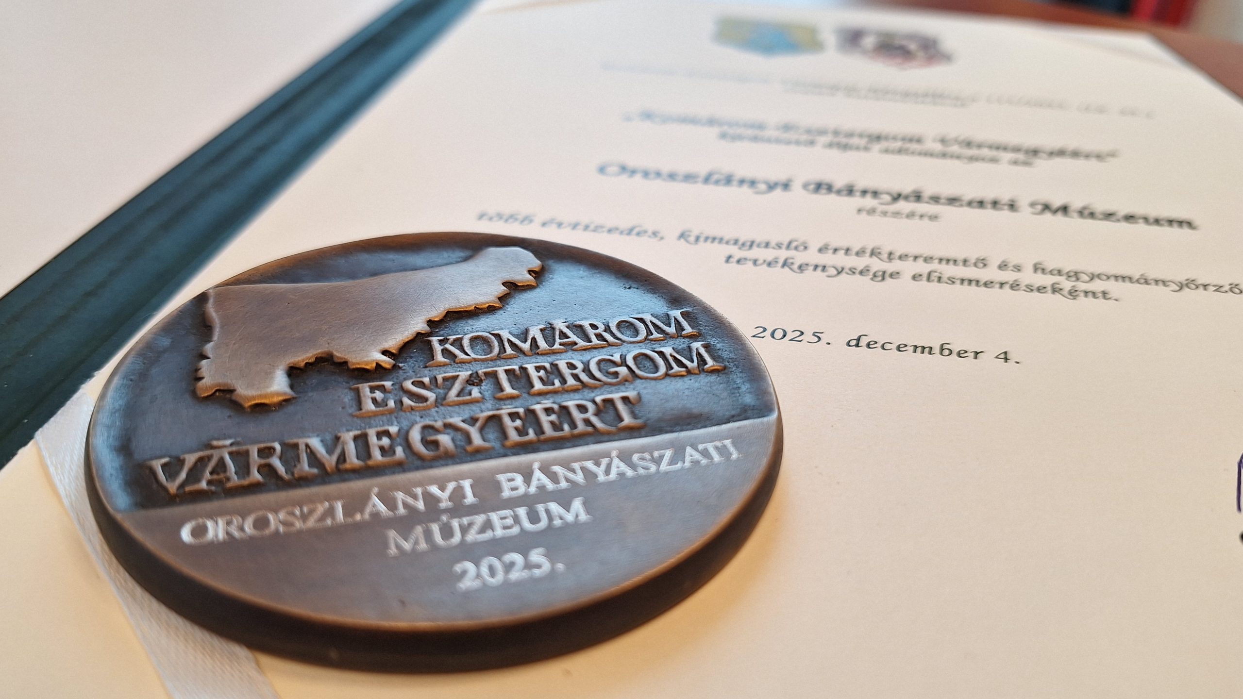 A múlt héten rangos vármegyei kitüntetést vehetett át az Oroszlányi Bányászati Múzeum képviselője a Majki Kamalduli Remeteségben megrendezett ünnepségen, ahol Komárom-Esztergom Vármegye Önkormányzata az elmúlt 24 évben végzett szakmai munka elismeréseként adományozta az intézmény számára a „Komárom-Esztergom Vármegyéért Díjat”.